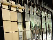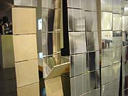 After several pieces based on projections I wanted to create a mechanical pattern machine. The Wondermachine 1 is a kinetic screen. Long strips of jacobs ladders flick from one side to the other. Every ladder is controlled by a servo motor, all motors are connected to a stamp chip. The microcontroller triggers the motors and pro-vides different patterns. 2002 |